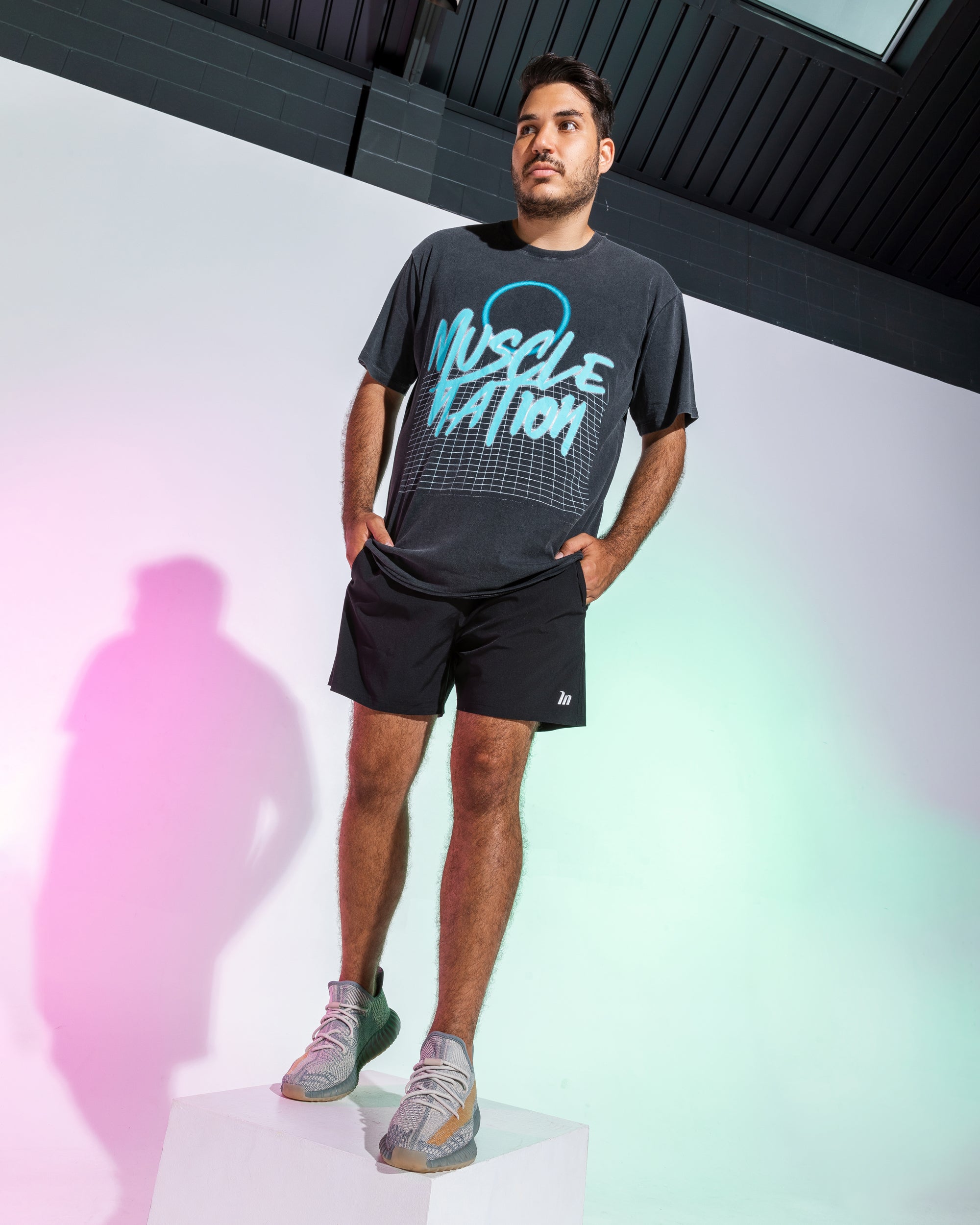 Our Mens Neon Grid Oversized Vintage Tee will transition you from the gym to the streets.