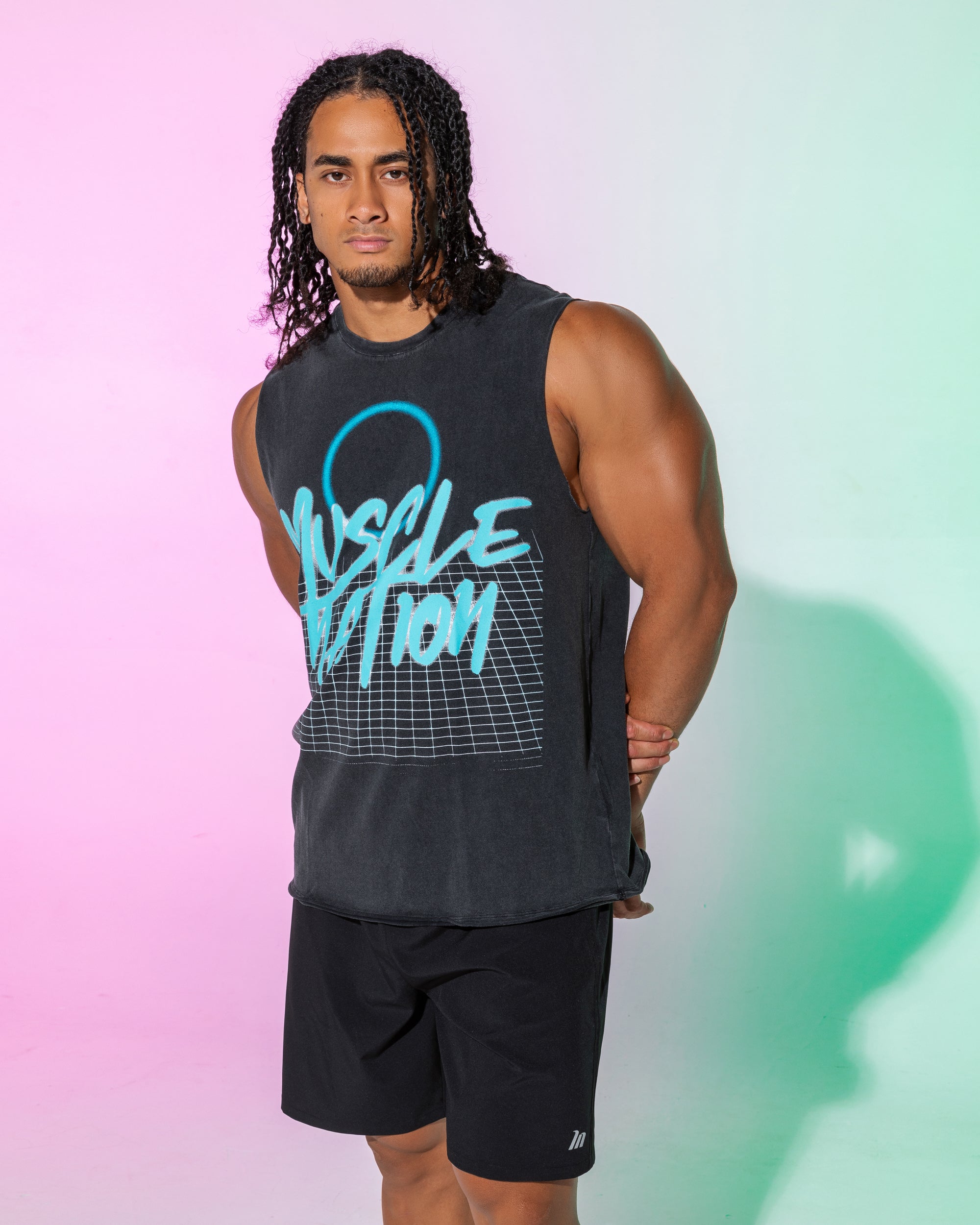 Mens Neon Grid Vintage Tank-Muscle Nation