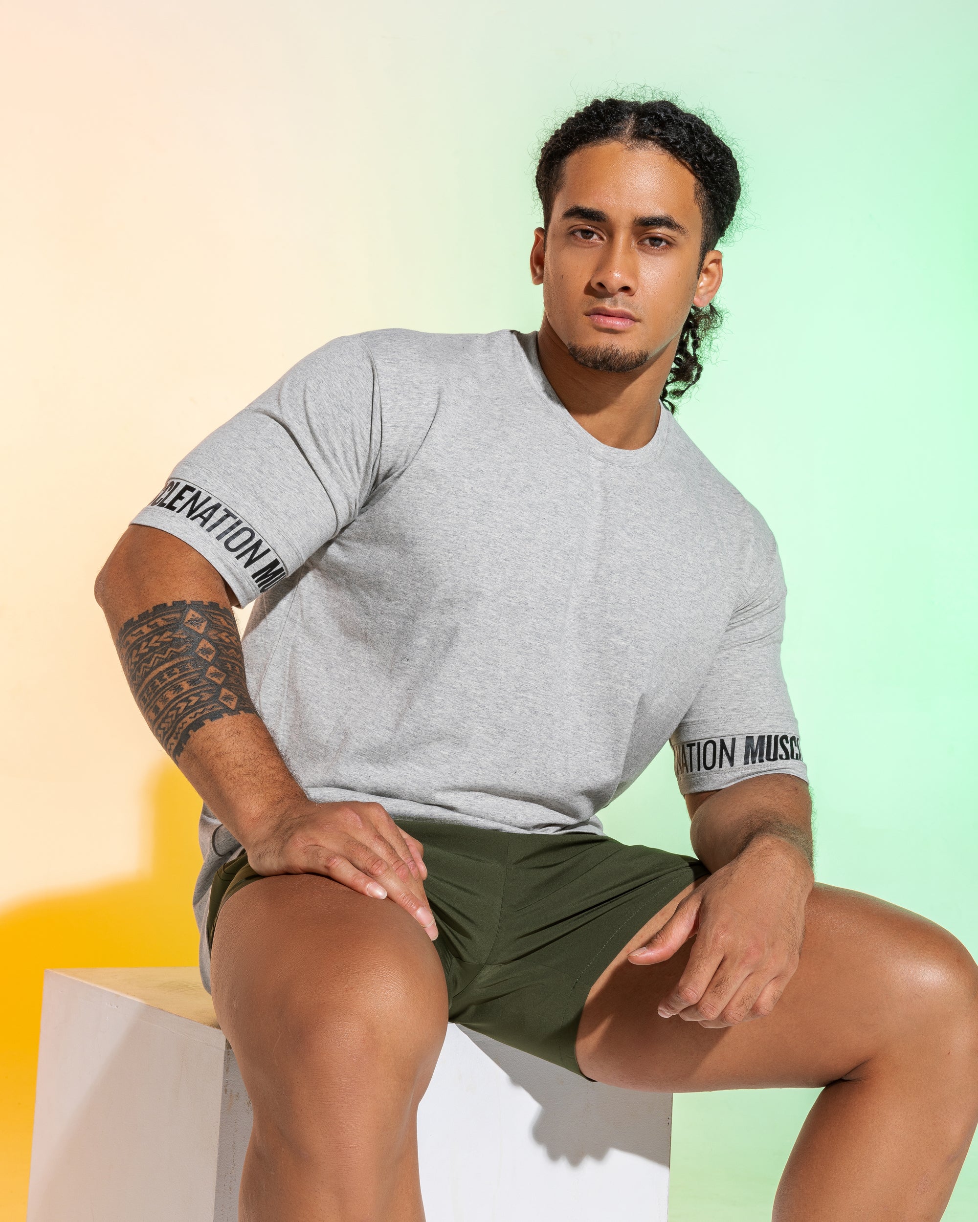 - Concealed elastic waistband with Muscle Nation branding