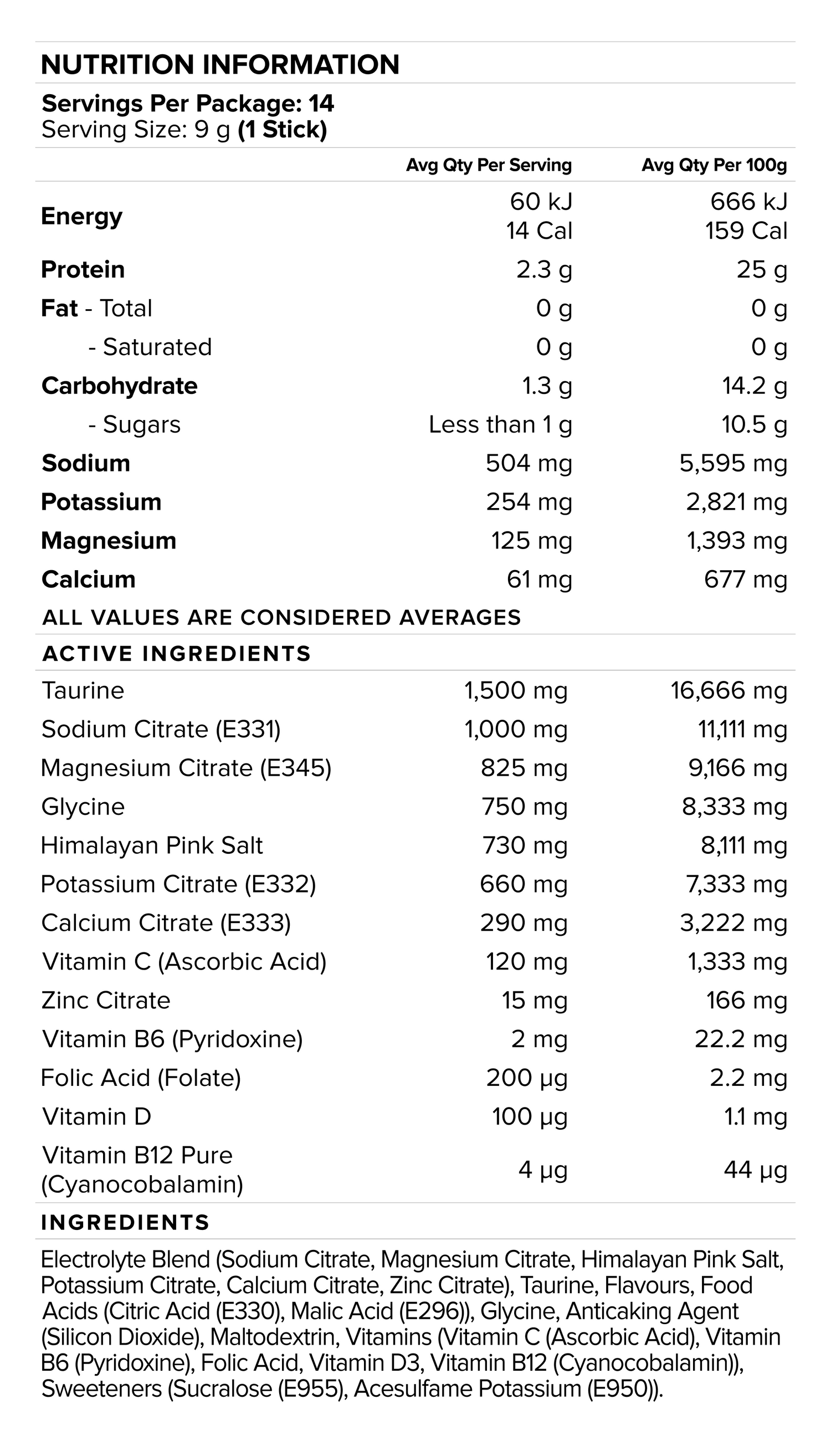 Fuel your performance and recovery with our convenient, single-serve electrolyte sticks. This refreshing drink mix helps replenish lost electrolytes and supports hydration, endurance, and overall physical performance, perfect for before, during or after training.