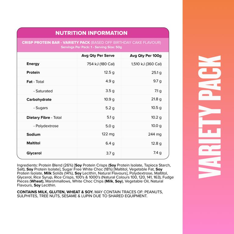 Nutrition and allergen information is specific to the Cookies & Cream flavour. For detailed allergen and nutritional information for other flavours, please visit the respective product pages.