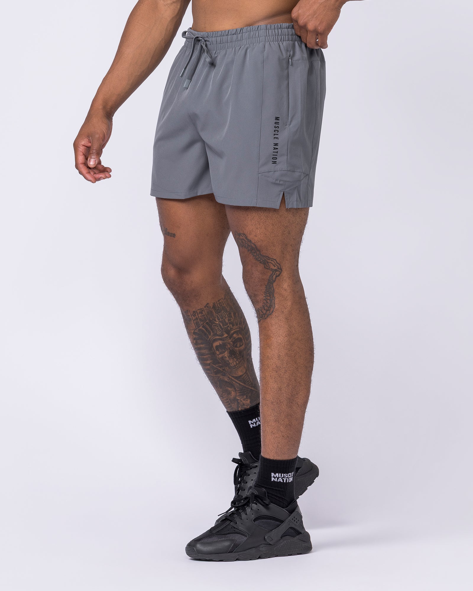 Function 4" Shorts - Grey/ Black Distressed Print