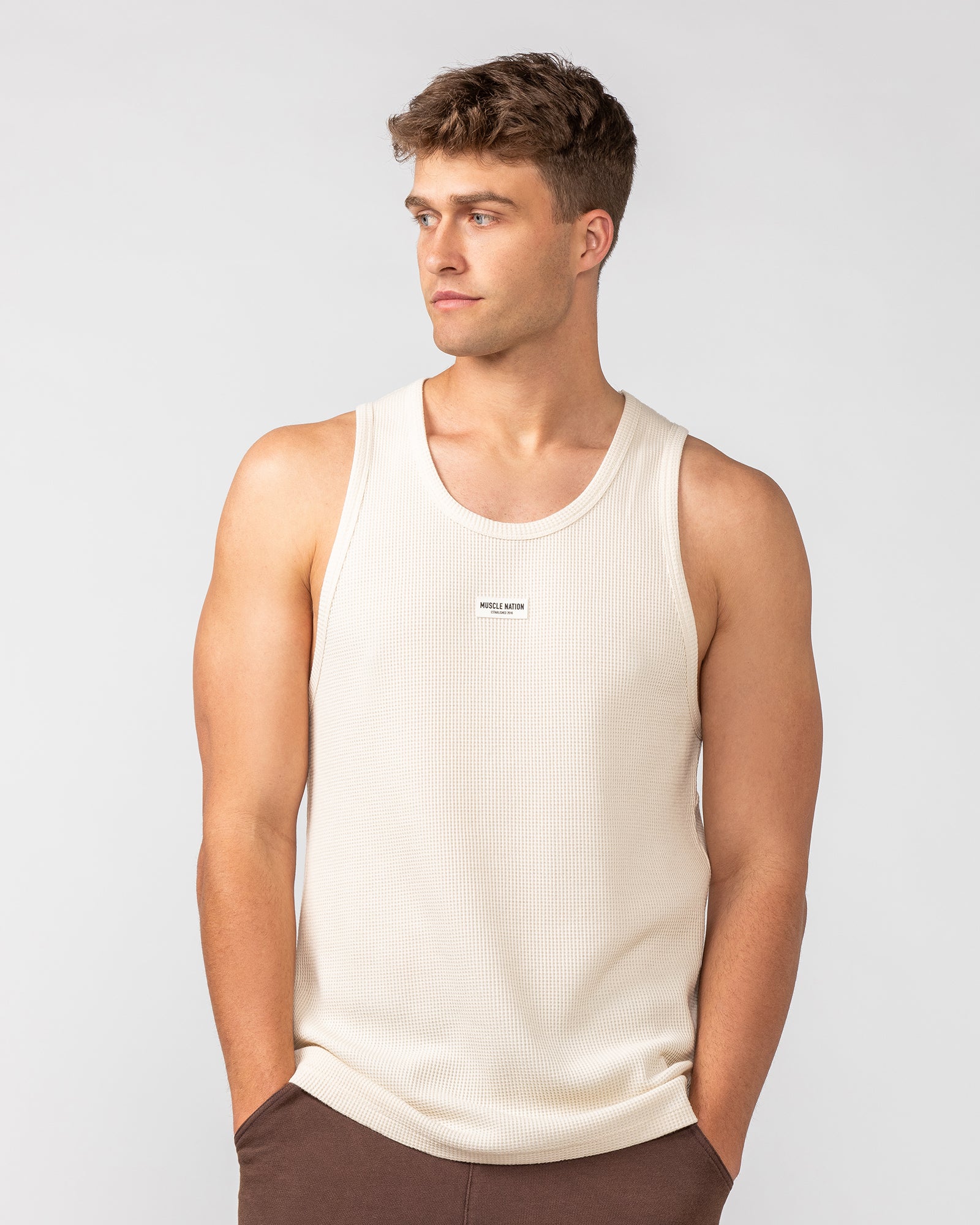 • Waffle Tank - Travertine-Singlets & Tanks-S-082408TRAV-S-MNAPPRL32458-1-Muscle Nation Waffle Tank - Travertine-Singlets & Tanks-S-082408TRAV-S-MNAPPRL32458-2-Muscle Nation