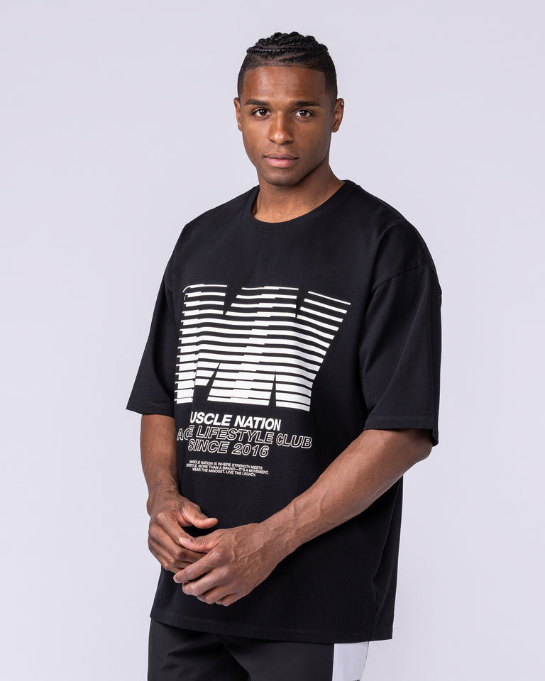 Meet your new go-to pump cover, the Lifestyle Oversized Tee. Built for comfort and style, this heavy-weight tee features a relaxed, slouchy fit with dropped shoulders for an easy-going look. The bold MN graphic print across the chest gives it that classic Muscle Nation edge, making it perfect for layering over your training gear or wearing solo on your rest days.