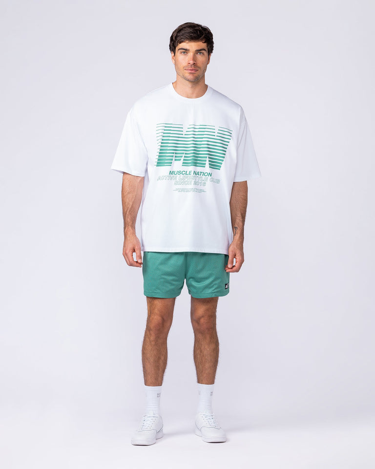 Meet your new go-to pump cover, the Lifestyle Oversized Tee. Built for comfort and style, this heavy-weight tee features a relaxed, slouchy fit with dropped shoulders for an easy-going look. The bold MN graphic print across the chest gives it that classic Muscle Nation edge, making it perfect for layering over your training gear or wearing solo on your rest days.