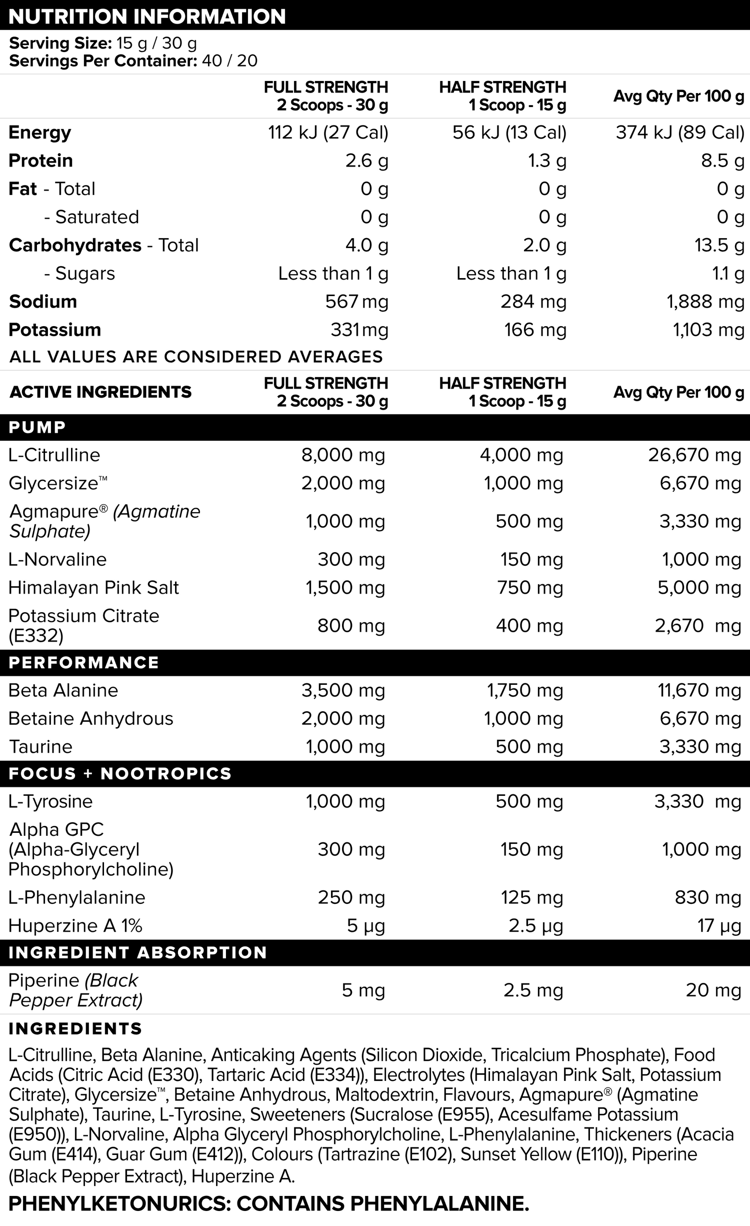 Note: This is a non-stim pre. Ideal for evening sessions or stacking with your favourite high-stim pre-workout.