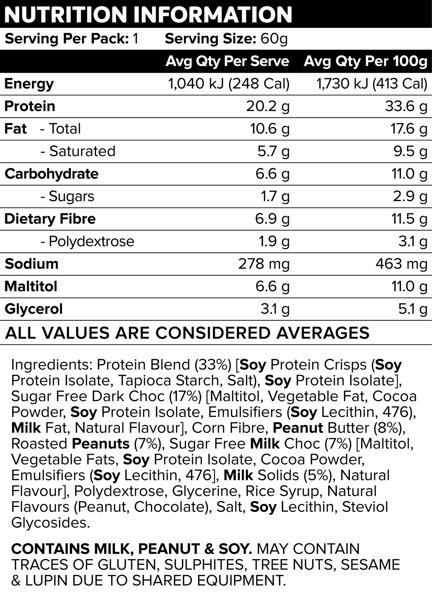 Introducing our delicious Choc Peanut Butter Crisp filled Protein Bar.