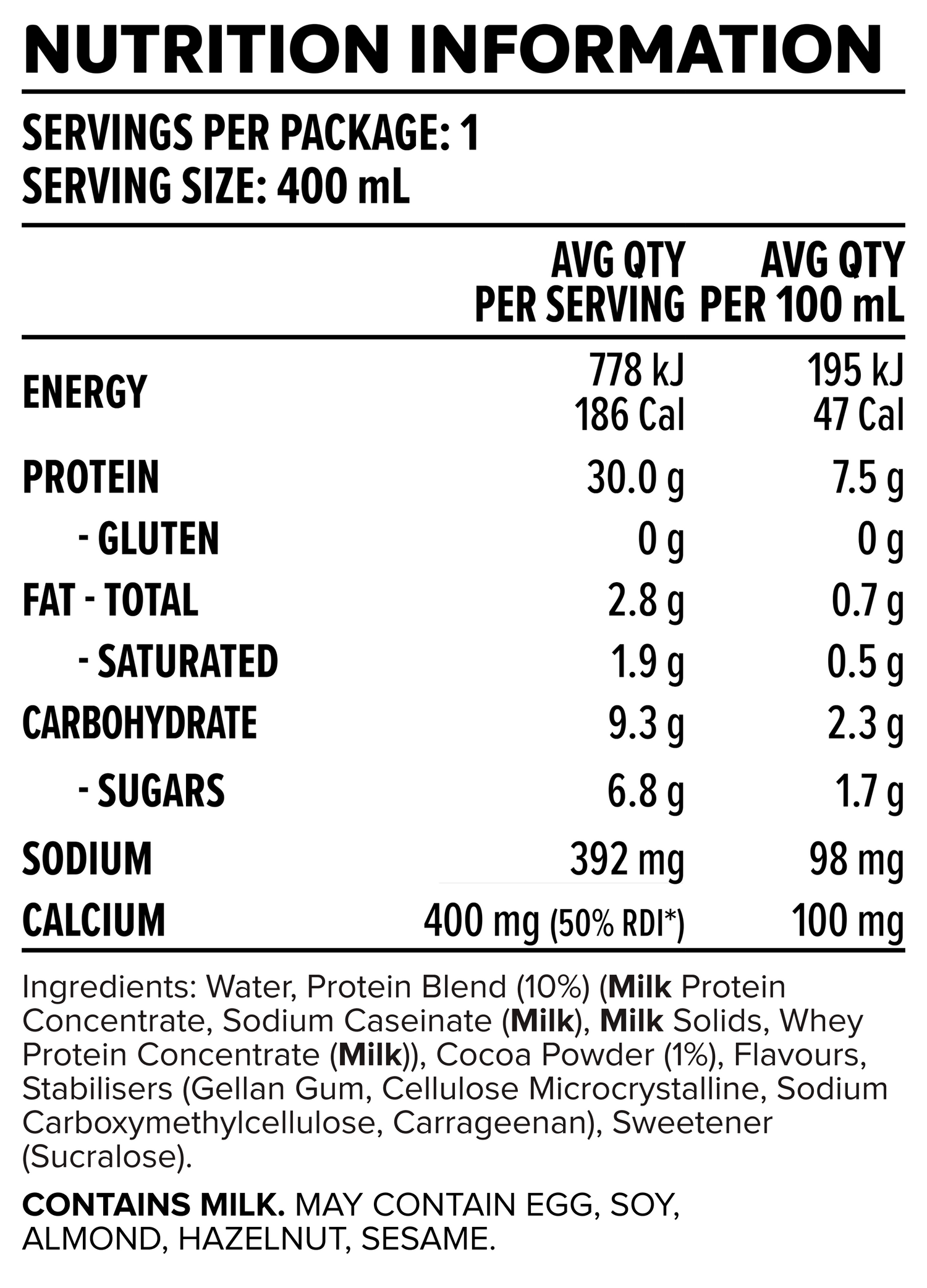 30g protein per 400ml serving