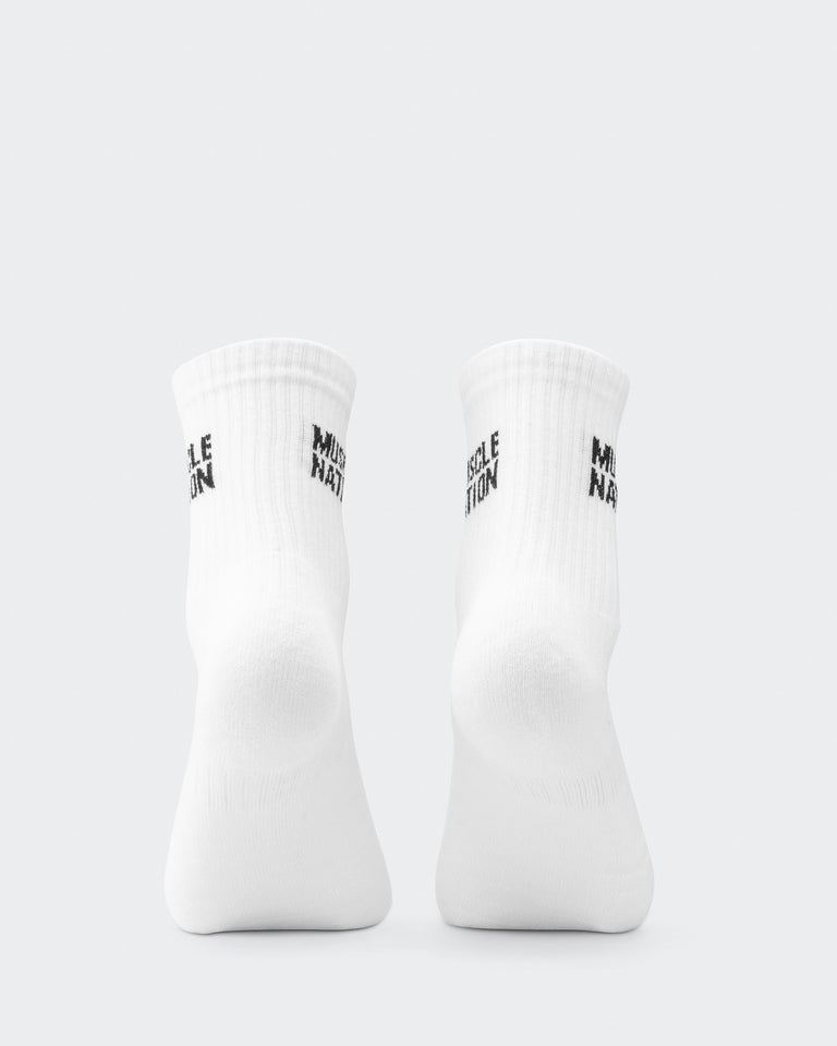 Step up your sock game with Muscle Nation Essential Crew Socks. This 2-pack combines style and function with a classic crew length and signature MN branding. Made from a premium cotton blend, these socks offer just the right amount of cushioning and stretch for all-day comfort, whether you're hitting the gym or the streets. The perfect balance of performance and everyday wear.