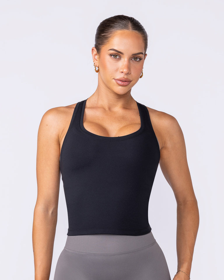 Perfect your training essentials with the Practice Tank. Crafted from our lightweight signature fabric, this fitted tank features a semi cropped length and a racerback design for easy movement and a clean, sporty look. Finished with neat bind details at the neck and armholes, it’s your go to piece for workouts, layering or casual wear.
