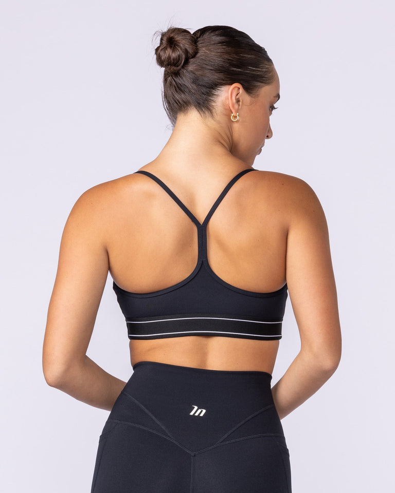 The Relay Bra is your new go-to for both training and everyday wear. Designed with a flattering scooped neckline and narrow bind straps, this sports bra offers medium support with a soft, stretchy feel. The elastic hem features a stripe detail and subtle MN branding for a sporty finish. Made from our Everyday fabric using recycled polyester, it delivers comfort, style, and sustainability in one.