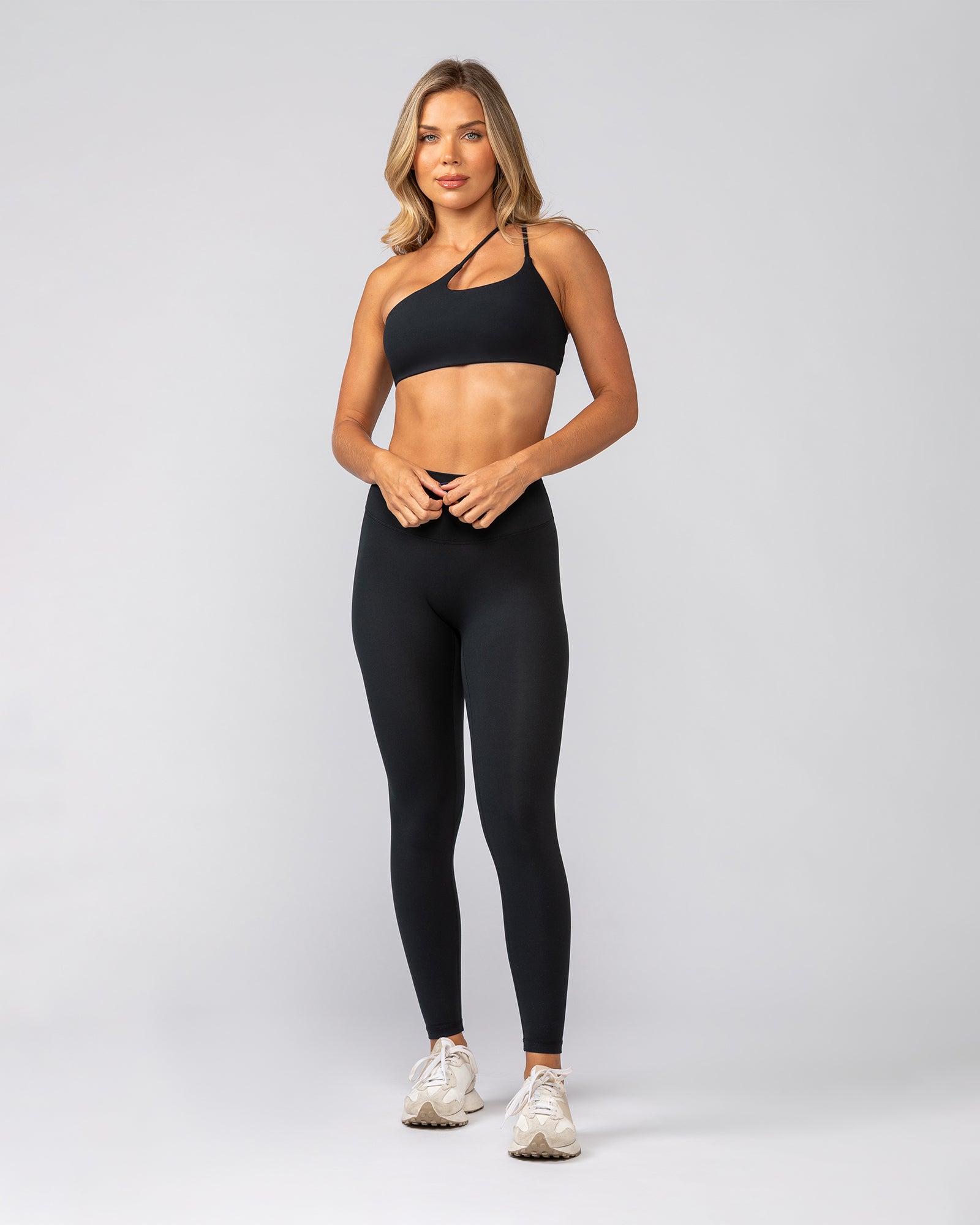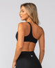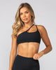 The Chosen Bralette delivers effortless comfort with a clean, sporty look. Made from buttery soft recycled polyester fabric, it gently stretches to move with you. The asymmetric neckline and dual shoulder straps create a flattering silhouette, while the open back keeps it breathable and minimal. Finished with a subtle Muscle Nation logo and a no dig waistband for all day ease.
