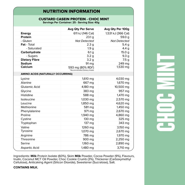 Our Custard Casein Protein is quick and easy to make, all you need is water or milk! With a smooth and creamy consistency, our Custard Protein is the perfect breakfast, snack or a night time treat. Our Custard Protein tastes amazing and is a good source of protein.