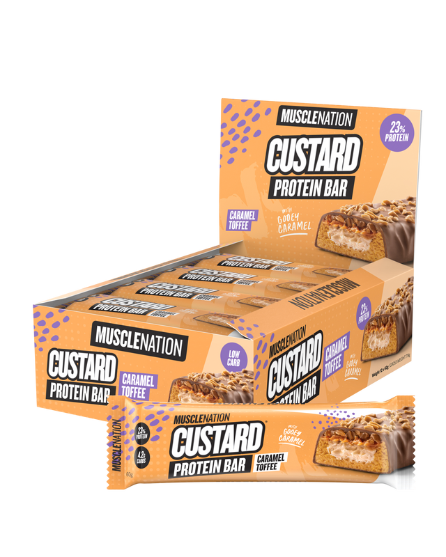Delicious Caramel Toffee Custard filled Protein Bar.