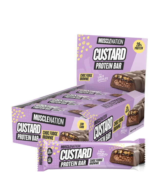 - Muscle Nation Double Chocolate Custard 26% (Muscle Nation Double Chocolate Flavoured Custard Powder (Milk Protein Concentrate 73.6% (Casein Protein 85%), Fibre (Inulin), Cocoa Powder 6.9%, Medium-Chain-Triglyceride (MCT) Oil Powder (Antioxidants 306, 307b) (Milk), Flavour, Thickener (Carboxymethylcellulose), Sweetener (Sucralose), Sodium Chloride), Sweetener (Maltitol), Humectant (Glycerol), Isomalto-Oligosaccharide (Soluble Fibre)), No Added Sugar Dark Chocolate 20% (Cocoa Solids 55%, Sweetener (Maltitol), Emulsifier (Soy Lecithin, 476), Natural Vanilla Flavour), Choc Paste 8% (Invert Sugar, Humectants (Sorbitol, Glycerol), Concentrated Pear Puree, Bulking Agent (Polydextrose), Cocoa Powder (4.6%), Sunflower Oil, Wheat Fibre, Natural Flavours, Gelling Agent (Pectin), Firming Agent (Calcium Lactate)), Polydextrose, Soy Protein Isolate, Hydrolysed Collagen, Humectant (Glycerol), Soy Protein Crisps, Milk Protein Concentrate, Isomalto-Oligosaccharide (Soluble Fibre), Whey Protein Concentrate (Milk), Cocoa Powder 2.5%, Sunflower Oil, Natural Flavour, Salt, Emulsifier (Soy Lecithin), Antioxidant (307b).