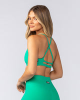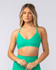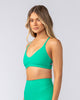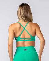Meet our Fantasy Rib Bralette - effortless style with practical support. Features a deep V neckline and cross-over shoulder straps creating a stunning open back. The high compression ribbed fabric smooths and supports while offering 4-way stretch for freedom of movement. Designed without removable padding but with space to add your own.