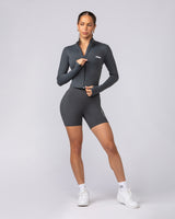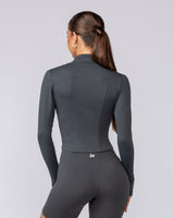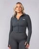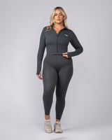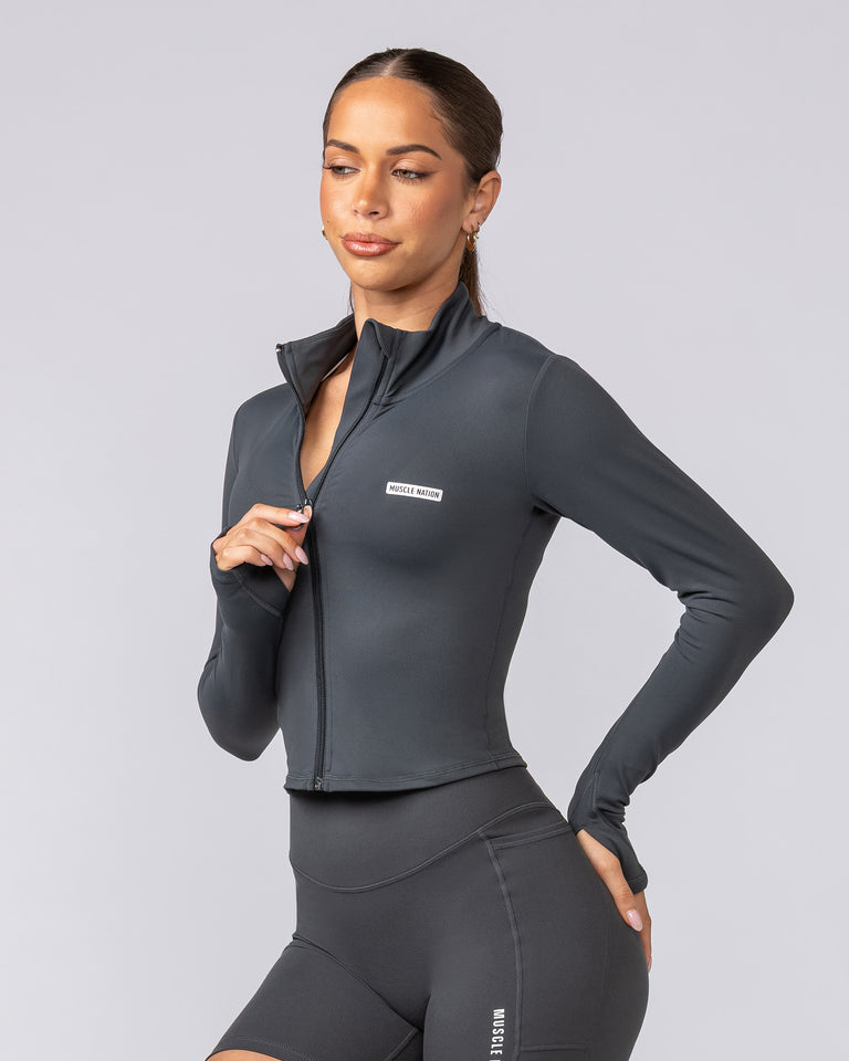 Your go-to layer for cooler days. The Favourite Zip Through Cropped Jacket is one of our most loved styles, designed with body-contouring side and back panels to sculpt your silhouette while keeping you cosy and covered. Fitted through the body with a cropped length that's slightly longer than our Meet and Greet style, featuring thumbholes in the sleeves and a custom Muscle Nation zipper. Made from our premium Signature Supplex fabric to keep you comfortable through movement, errands, or early morning walks.