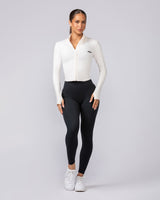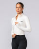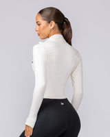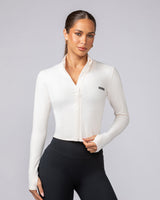 Your go-to layer for cooler days. The Favourite Zip Through Cropped Jacket is one of our most loved styles, designed with body-contouring side and back panels to sculpt your silhouette while keeping you cosy and covered. Fitted through the body with a cropped length that's slightly longer than our Meet and Greet style, featuring thumbholes in the sleeves and a custom Muscle Nation zipper. Made from our premium Signature Supplex fabric to keep you comfortable through movement, errands, or early morning walks.