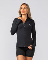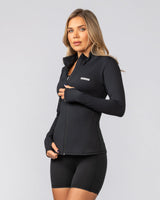 Your go-to layer for cooler days. The Favourite Zip Through Jacket is designed with body-contouring side panels to sculpt your silhouette while keeping you cosy and covered. Fitted through the body with thumbholes in the sleeves and a custom MN branded zipper, it blends comfort with clean detailing. Invisible front zip pockets keep your essentials secure on the go. Made from our moisture-wicking, quick-drying Signature fabric to keep you comfortable through movement, errands, or early morning walks.