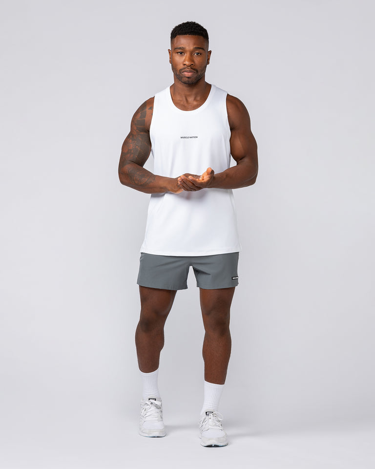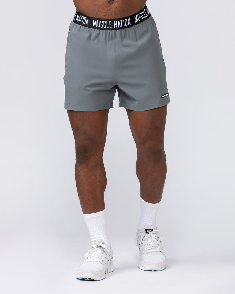 The Level Up Training 4" Shorts are made to move. With a four-inch inseam, side splits and ultra-light running poly fabric, these shorts are built to keep you fast, cool and focused. The true to size fit offers a streamlined feel without restriction, while the branded elastic waistband keeps everything in place through high-intensity movement. Side zip pockets give you secure storage without adding bulk. Made with multi-directional stretch fabric that flexes with you during every lift, sprint and rep.