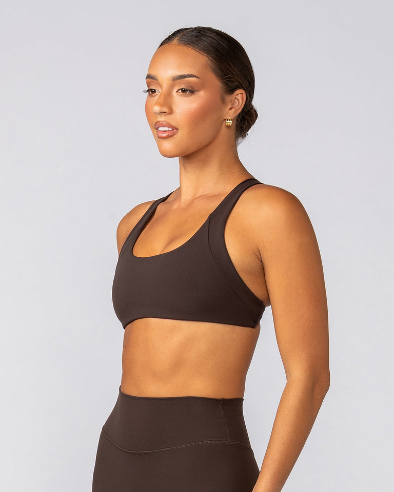 Effortless comfort meets refined minimalism. The Rebel Bralette is designed with a scooped neckline and open racer-back, creating a clean, streamlined silhouette that moves with you. Cut from our buttery-soft Liberty fabric, it offers light support and a barely-there feel - perfect for pilates, stretch sessions, or everyday wear. Finished with a subtle MN logo on the T-back, it's a versatile essential built for comfort and everyday movement.