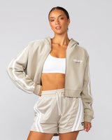 Recovery never looked so good with our Recoup Cropped Zip Up Hoodie. The cropped length pairs perfectly with high-waisted bottoms, while the full zip design offers versatile layering options. The comfortable cotton blend provides warmth without bulk, and the spacious hood offers extra coverage for cooler days. Details include ribbed cuffs and hem for a secure fit, plus a sleek Muscle Nation logo on the chest.
