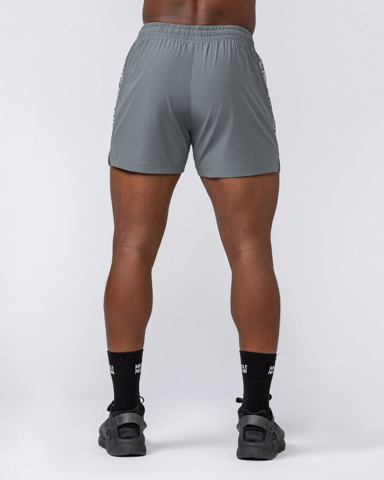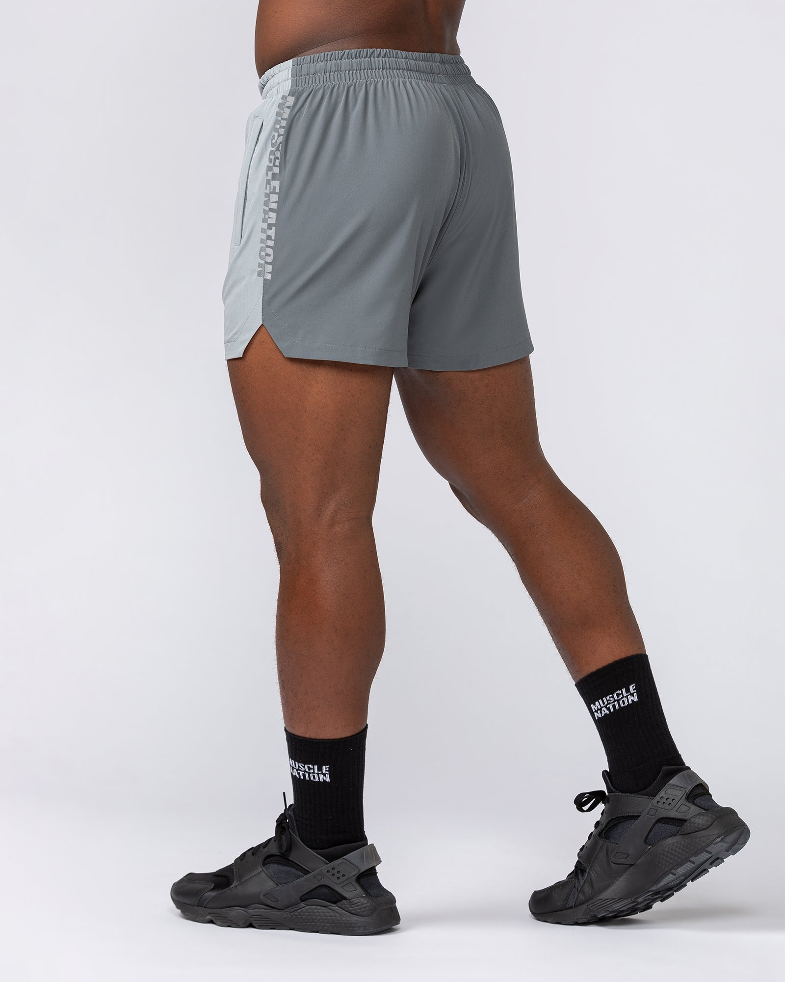 The Stride 3.5" Shorts are built for speed, movement and unrestricted training. With a shorter 3.5" inseam and lightweight active polyester fabric, these shorts keep you cool and mobile when your session heats up. The side splits at the hem offer extra freedom for dynamic movements, while the elasticated waistband with internal drawcord ensures a secure, adjustable fit. Zipper welt pockets keep your essentials locked down during intense workouts, and the 2-tone Muscle Nation print down each side leg adds a bold finish to this performance-driven design.