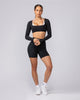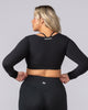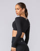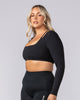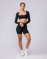 Elevate your training wardrobe with the Ultimate Long Sleeve Top. Crafted from our soft Liberty fabric with double-lined construction front and back, this fitted and cropped top features a unique rounded square neckline and seamless finish with no visible hem stitching. Perfect for layering or wearing solo during workouts, yoga sessions, or casual outings.